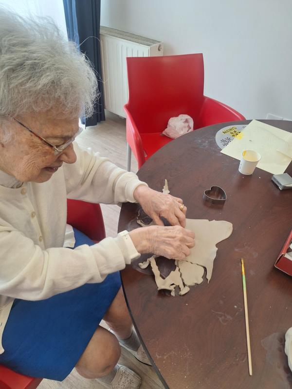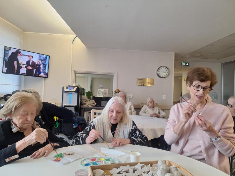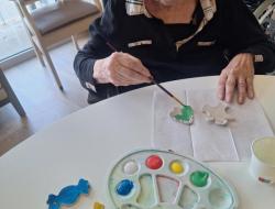 Avec les résidents, nous avons façonné des objets en argile, que nous avons laissés sécher avant de reprendre aujourd’hui pour une séance de peinture tout en couleurs.Cet atelier a été un véritable moment de partage, les résidents, leurs familles et l’équipe soignante ont pris plaisir à se retrouver autour d’une activité simple, créative et pleine de sens.