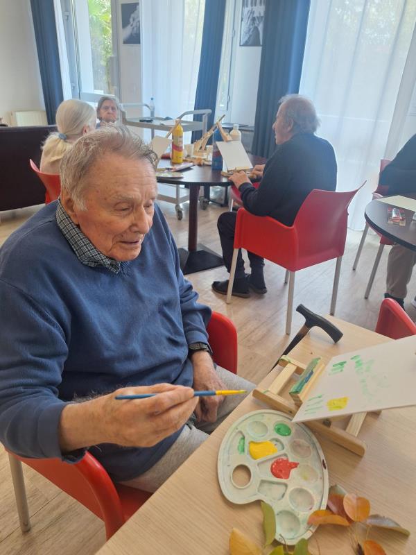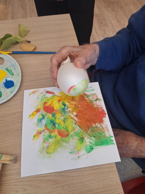 Aujourd’hui, les résidents de l’unité protégée ont participé à un atelier de peinture intuitive sur le thème de l’automne.