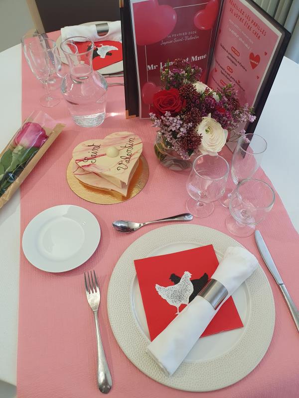 Le 14 février, nous fêtons l'Amour avec un grand "A" pour tous les couples de la résidence. De belles tables ont été préparées pour l’occasion et évidemment du Champagne avec le fameux fondant au chocolat.